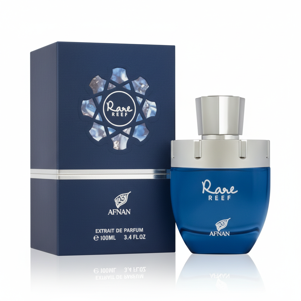 A fresh and aromatic Extrait de Parfum for men and women, launched in 2025. It is part of Afnan's "Rare" collection and was crafted by perfumer Lucas Sieuzac to evoke the tranquility of a peaceful ocean escape.