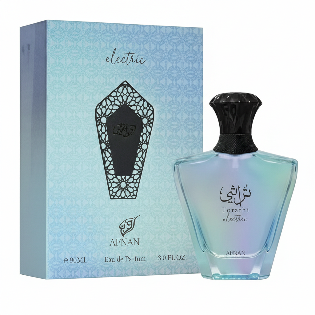 Turathi Electric is an Aromatic Fruity fragrance characterized by a bright, citrusy opening and smooth, modern woody-floral layers.
