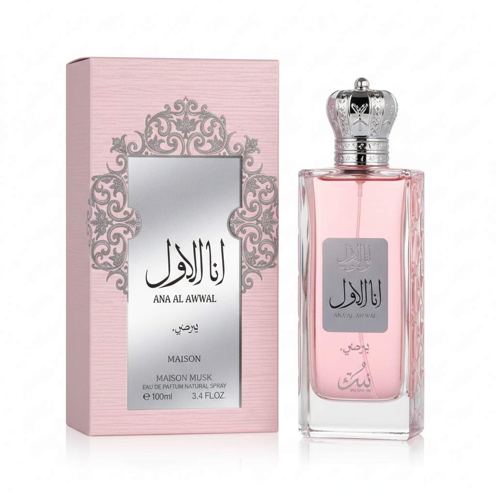 A refined and charismatic oriental floral fragrance for women from the brand Nusuk. This Eau De Parfum (EDP) is characterized by its delicate pink-hued liquid and signature crown-shaped cap, offering a sophisticated scent that balances fresh, fruity, and warm elements.