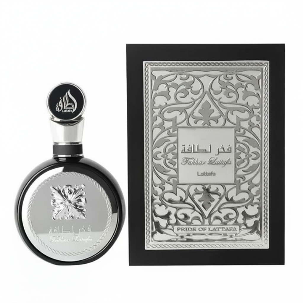 Fakher Lattafa highlights a fougere – woody union along with elegant notes of violet leaf, masculine nutmeg and bergamot. The heart accentuates clary sage, tart geranium and orange blossom finely spiced with coriander, while tonka, patchouli, vanilla and sandalwood linger in trail, which attract our attention with strong creamy shades.