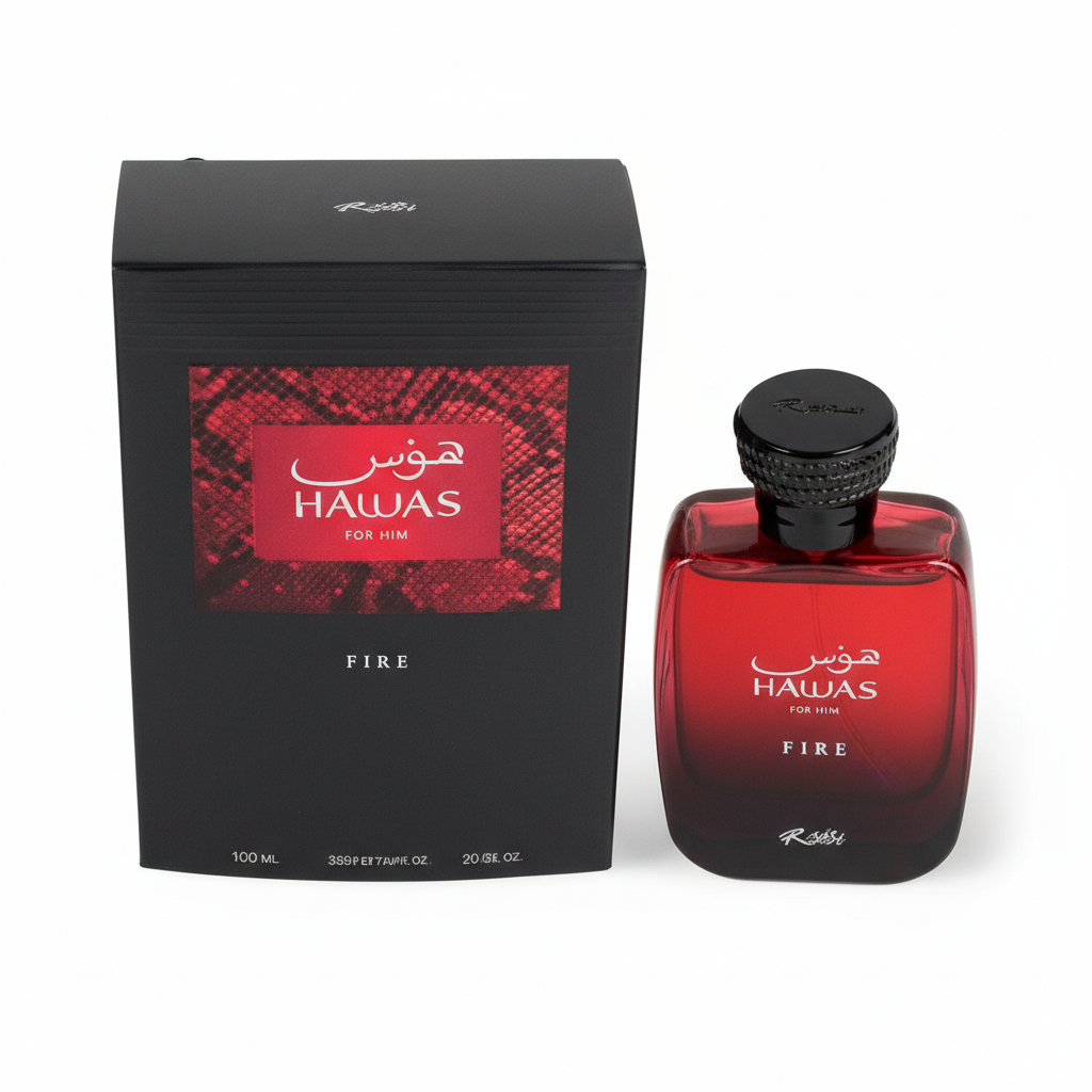 Hawas Fire is described as a "fiery" and passionate scent, often compared to the DNA of luxury fragrances like Gissah Imperial Valley.