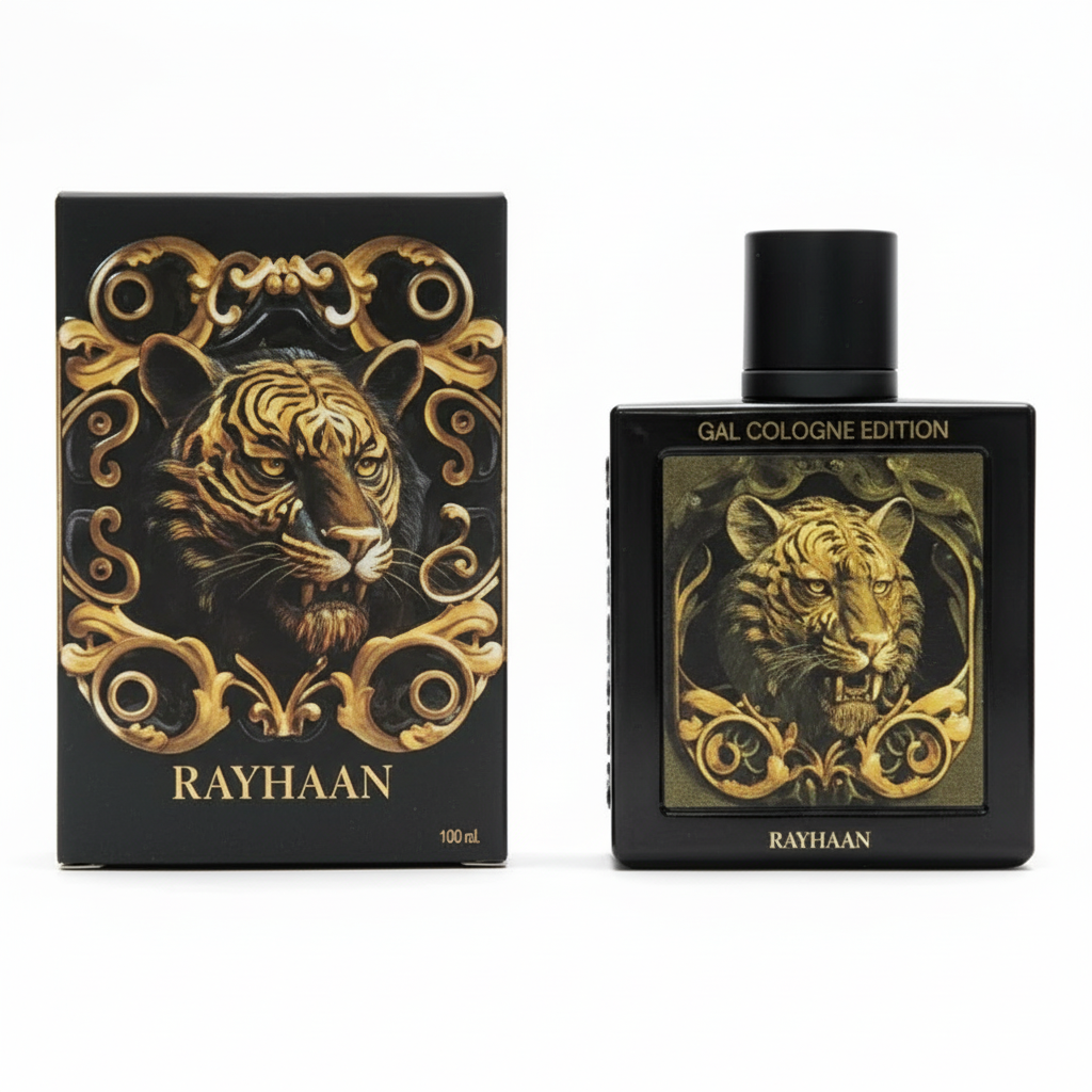 Rayhaan Tiger Cal Cologne Edition 100ml Extrait De Parfum for Men, a captivating fragrance that embodies raw strength and refined elegance. This seductive scent opens with a vibrant blend of spice and freshness, setting a bold first impression. At its heart lies a warm, exotic depth, balancing sensual florals with hints of rich and precious woods. The finish is an alluring fusion of Patchouli, Frankincense & Amber, leaving a magnetic trail that resonates with confidence and charisma. TIGER is crafted for the man who exudes power and sophistication—an unforgettable scent for the true modern seducer.